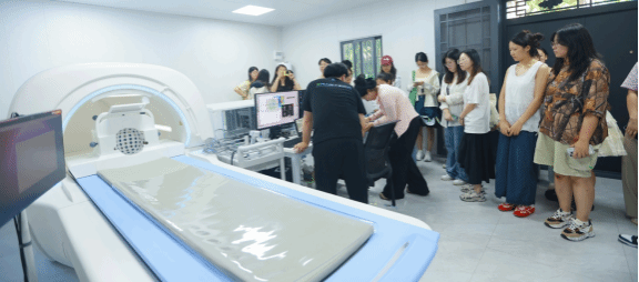 仪式之后,现场进入了最令人期待的上机操作与演示环节。在未磁科技工程师团队“手把手”的指导下,师生们分组轮流体验,零距离接触这台尖端设备。从受试者准备、数据采集到信号处理,大家亲身感受了MEG实验的全流程。当屏幕上实时跃动起代表大脑活动的信号曲线时,现场响起了阵阵赞叹,浓厚的求知热情与互动氛围将活动推向了高潮。