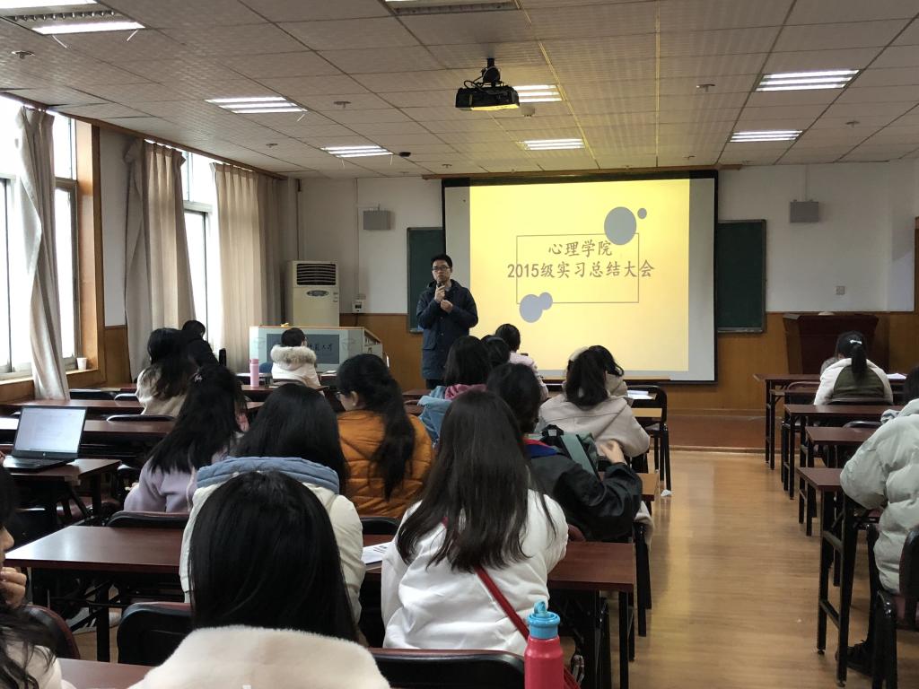 (通讯员 陈慧莉 蔡李雪)12月25日下午,心理学院2015级本科生实习总结大会于田家炳楼905召开。出席本次会议的成员有心理学院教授李董平、蔡志慧、王忠军、熊俊梅、夏勉、彭明、教学秘书杜宸宇以及参与本次实习的2015级本科生。会议由王忠军主持。