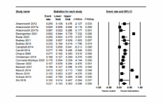 统计显示,治疗结束后和最长随访期共获得48个脱落率数据,两个时间点的结果存在差异。治疗结束时,干预组平均退出率约为 22%(95% CI 0.13-0.36),低于对照组的 26%(95% CI 0.16-0.39);在最长随访时,干预组退出率约 28.2%(95% CI 0.19-0.39),对照组约 27.8%(95% CI 0.20-0.37)。四组数据均低于传统面对面社会心理干预约30%的脱落率,这提示数字化社会心理干预在该人群的治疗保留率方面具有潜在优势。