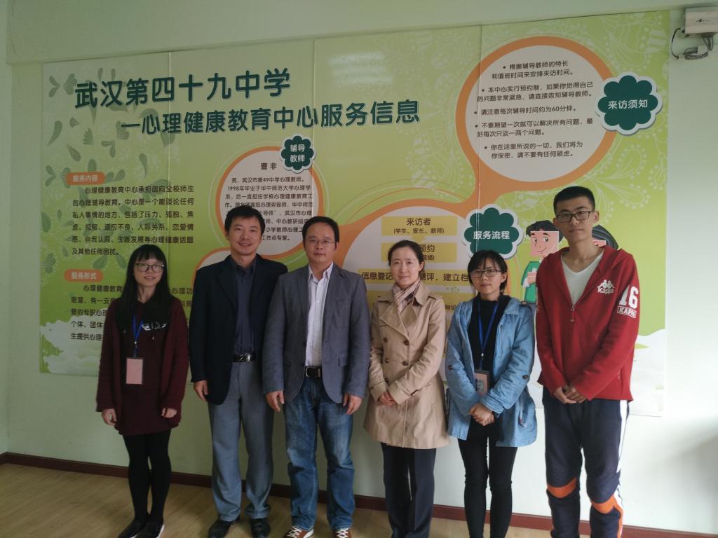 (通讯员 邹彩玲)2017年10月23日下午两点,心理学院副院长孙晓军与实习指导老师熊俊梅老师来到武汉市第49中学看望实习生,对学生的实习工作提供支持与指导。