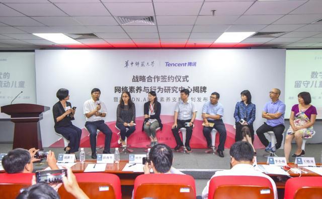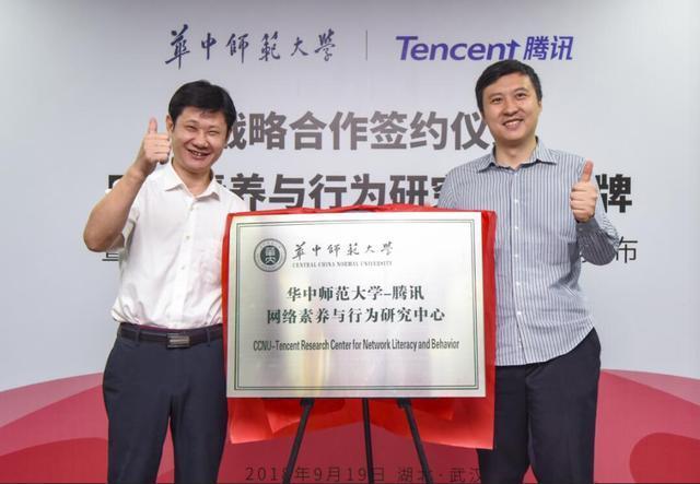 华中师范大学校长赵凌云与腾讯副总裁姚晓光共同为中心揭牌,宣布华中师范大学-腾讯网络素养与行为研究中心的正式成立。中心将聚焦儿童青少年网络素养和行为的发展与教育研究。