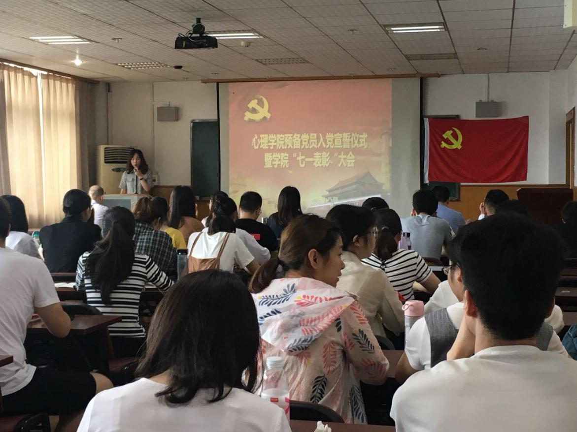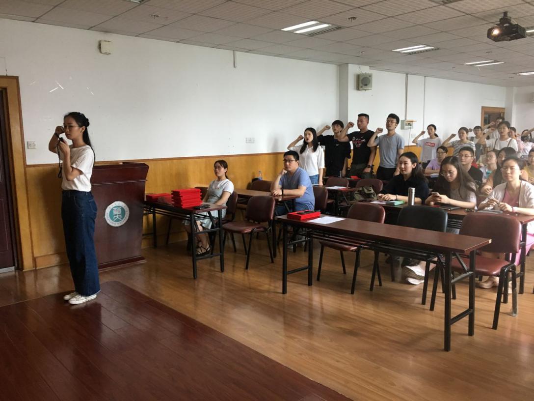 2019年6月18日上午,心理学院党委在田家炳楼905室举行了预备党员入党宣誓仪式暨学院七一表彰大会。学院党委书记马新华,党务干事兼研究生辅导员张婷,研究生兼职辅导员任梦璐,本科生辅导员吴艳、温碧轩,18-19年度新发展预备党员及学院17-19年度优秀共产党员和先进党支部代表参加。党务干事张婷主持会议。