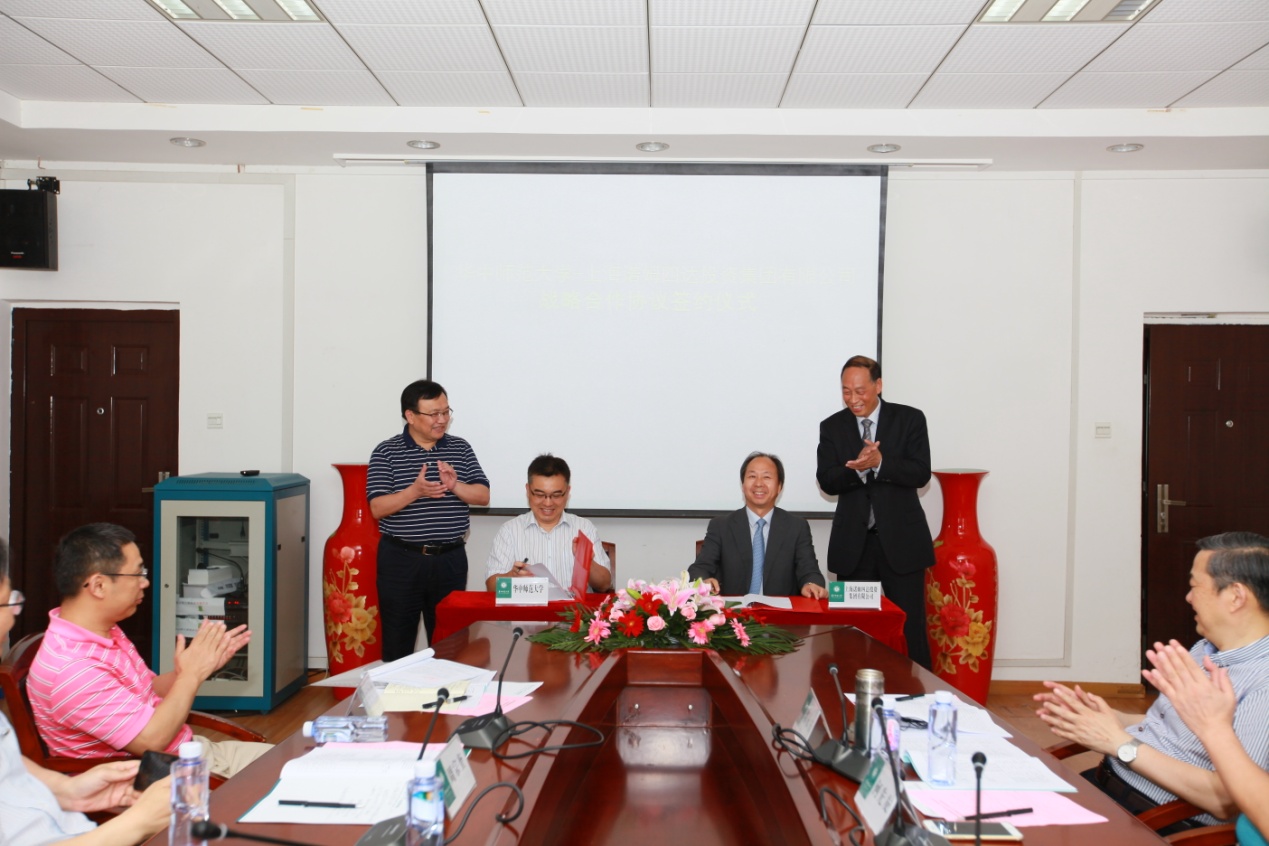 随后,华中师范大学代表叶飞与上海诺姆四达投资集团有限公司代表肖义平在多方见证下签署了战略合作协议。