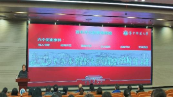 接下来,通过回顾学校发展,傅强馆长首先介绍了三个版本的校歌。他说,虽然时代在改变,但歌词中“立德立言立功”等字句的传承,代表了华师人心系天下的情怀。接着,傅强详细介绍了华师历任校长的治学观念,彰显了华师为党育人、为国育才的忠诚。傅强深情地讲道:在历史的发展中,华师通过教育在危亡时救国,在发展时报国、强国。