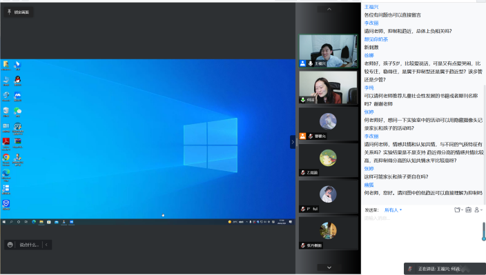 在报告结束后,学院师生与何洁教授就儿童气质类型的划分、如何做好追踪研究等相关问题展开了热烈的讨论。同时,利用在线平台纷纷向何洁教授提出了有关幼儿实验研究设计、“不同气质类型儿童如何养育”、“在追踪研究过程中儿童的气质类型是否会发生改变”等问题,何洁教授也对这些问题一一进行了详细的解答。
