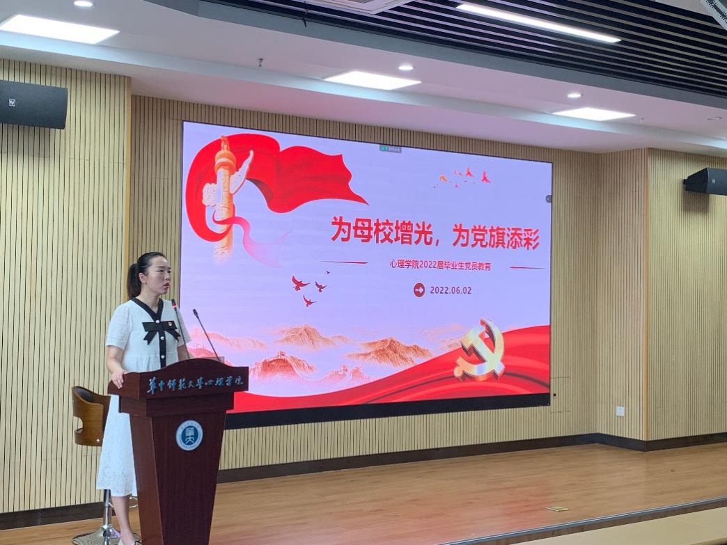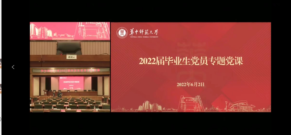 为切实加强毕业生党员教育,增强理想信念,提高党性修养。引导毕业生党员深入认识新时代使命责任,感恩奋进,担当有为,激发毕业生党员爱校荣校的热情和使命担当。2022年6月2日下午,心理学院2022届毕业生党员专题教育大会在南湖综合楼N8060举行,心理学院党委书记马新华以及全体毕业生党员参加本次会议。会议由心理学院党务干事、研究生辅导员张婷主持。会议共分为两项,第一项进行心理学院毕业生党员主题教育培训,第二项集中观看并聆听华中师范大学党委书记赵凌云给全体毕业生党员讲授的专题党课。