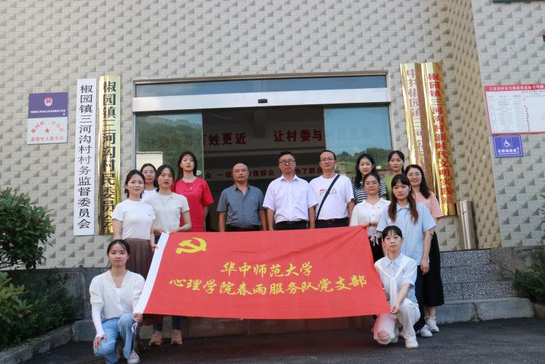 (通讯员 王溪)7月8日上午,华中师范大学心理学院春雨服务队在宣恩县未成年人保护中心启动心理健康帮扶项目。心理学院党委副书记苏晓刚、华师驻三河沟村第一书记范重庆、宣恩县教育局副局长王海燕、宣恩县未成年人保护中心主任冯琼、春雨服务队指导老师任嘉航、刘幽悠,以及春雨服务队10名队员参加活动。