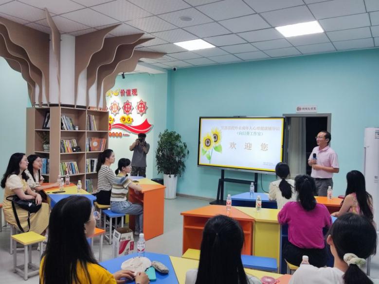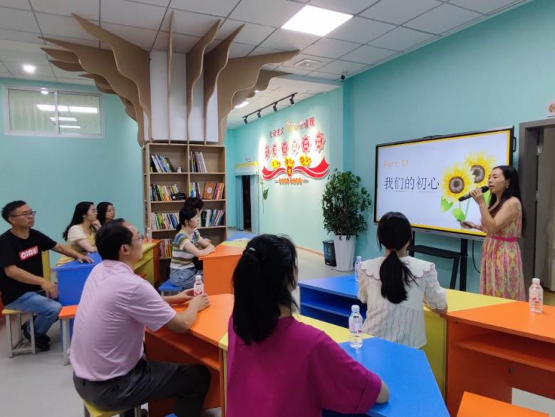 王海燕副局长首先对心理学院师生一行表示热烈欢迎。她指出,宣恩县正逢建设全国文明城市之际,县委县政府高度重视未成年人心理健康教育,划拨90万元资金,于今年3月开始筹建未成年心理健康辅导站,4月完工,5月投入运营,近两个月来已经开展了一些基础性工作。她表示,希望以县教育局与华中师范大学心理学院签订的合作协议为依托,充分发挥华师心理学院学科专业优势,完善未成年人心理健康教育体系,为宣恩县的全国文明城市创建提贡献力量。冯琼主任从“我们的初心”“我们的践行”“我们的远方”三个方面介绍了向日葵工作站的基本情况。