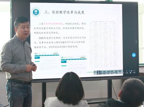 随后,示范中心主任赵庆柏教授进行心理学实验教学示范中心评估汇报,从实验教学、人才培养、仪器设备、管理运行、示范辐射等方面系统汇报了示范中心2017-2021年度的工作成果,并详细阐述了自评发现的问题以及下一阶段的发展思路。汇报完毕后,与会领导及专家共同前往示范中心实地——南湖综合楼6楼,逐间进行详细考察,并查看示范中心评估报告的系列支撑材料。