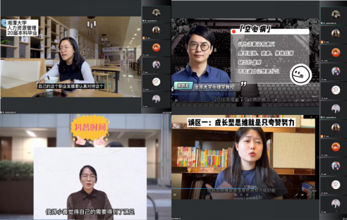 最终评审出两个作品推荐参加全国比赛,作品一是由李瑶同学创作的《让孩子受益终身的成长型思维》(指导老师:牛更枫),作品二是由邱荟叶、张思祺、赵逸盈共同创作的《谈恋爱吗?倾家荡产那种——“杀猪盘”背后的心理效应》(指导老师:谢员)。10月28日,学院邀请了田媛老师、部分评委老师和获奖选手的指导老师一起针对获奖作品进行进一步的修改打磨,提出修改意见,希望推选出去的作品能在全国应用心理实践技能大赛的心理科普微视频比赛中取得佳绩。