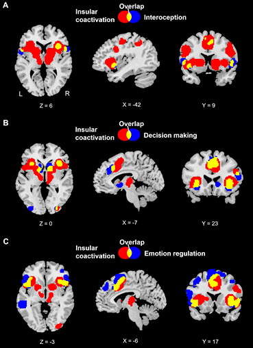 右脑岛的共激活模式与内感受,决策和情绪调节的重合脑区