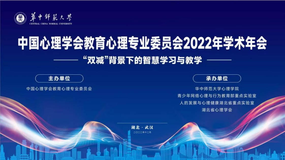 2022年12月10日至11日,由中国心理学会教育心理专业委员会主办,华中师范大学心理学院、青少年网络心理与行为教育部重点实验室、人的发展与心理健康湖北省重点实验室以及湖北省心理学会承办的中国心理学会教育心理专业委员会2022年学术年会在武汉顺利召开。会议采取线上与线下相结合的形式,线下举办地点位于华中师范大学南湖综合楼N8060。会议期间通过直播平台、在线会议等形式收看的总人数超过4.2万人次。本次会议聚焦“双减”政策、多媒体网络学习、神经过程机制、父母投入、学科教学、健康中国、教育数字化等主题,是一场多视角、多层面、全方位、全覆盖的高度总结,既体现了发展的前沿方向,又十分接地气,营造出轻松愉快的学术氛围,是一场有高度、有温度、有深度、有热度的学术盛宴。