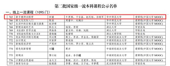 | 我院田媛教授团队《新手教师训练营》课程入选第二批国家级线上一流本科课程