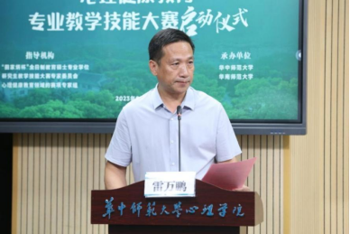 2023年9月12日,由华中师范大学和华南师范大学共同承办的2023年全国“田家炳杯”全日制教育硕士专业学位研究生“心理健康教育”专业教学技能大赛在华中师范大学南湖综合楼8060正式启动。赛事指导小组组长、评委会主任、华中师范大学校领导、心理学院常务副院长、以及来自全国76所兄弟单位的参赛学生和指导教师通过线上线下的方式出席本次启动仪式。启动仪式由华中师范大学研究生院院长雷万鹏教授主持。