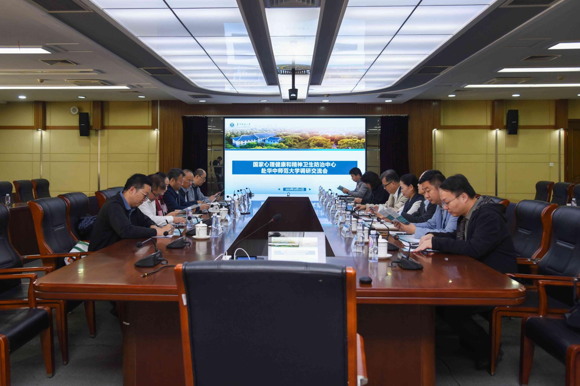 10月11日,国家心理健康和精神卫生防治中心党委委员、副主任王钢,武汉市精神卫生中心党委书记赵俊一行来我校调研指导工作,并在逸夫国际会议中心二楼会议室与副校长彭南生以及相关单位负责人进行座谈。