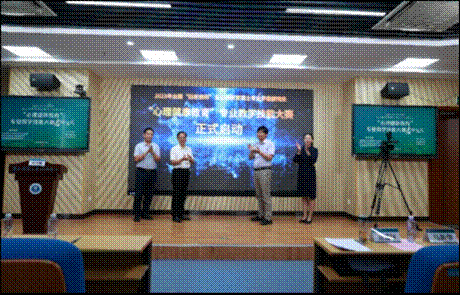 华中师范大学党委副书记查道林教授在会上致辞。赛事指导小组组长、评委会主任,上海师范大学卢家楣教授发表讲话。在经验分享环节,往届优秀作品指导教师,江苏师范大学石春老师进行了指导经验的交流。作为共同承办单位代表,华中师范大学心理学院常务副院长马红宇教授对本次赛事的举办表达了感谢。最后,查道林副书记、雷万鹏教授、周宗奎教授和马红宇教授在热烈的掌声中共同开启了2023年全国“田家炳杯”全日制教育硕士专业学位研究生“心理健康教育”专业教学技能大赛启动标识。