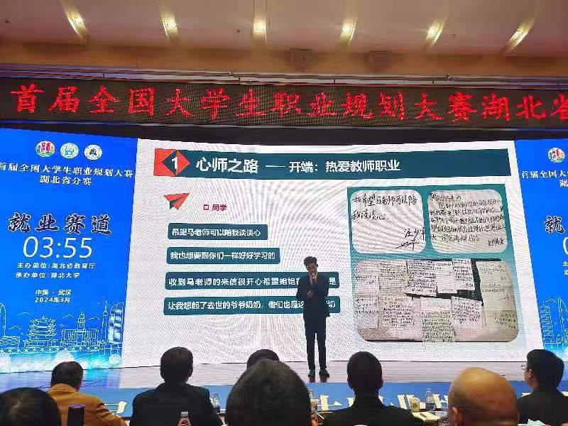 近日,首届全国大学生职业规划大赛湖北省赛区总决赛在湖北大学举行。省赛高教组分为成长赛道和就业赛道,我院2021级本科生姚翼航获高教组成长赛道银奖,2020级本科生马军获高教组就业赛道银奖,成为全校唯一一个“双赛道”获奖单位。