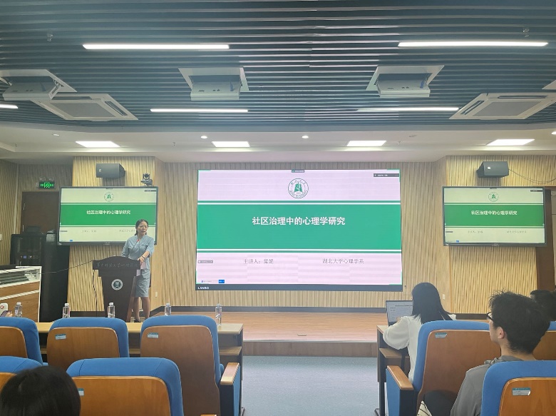 2024年4月26日下午2点30分,华中师范大学心理学院第219期华大心理学院学术讲坛于南湖校区N8060举办。本次讲座由湖北大学心理学系梁娟副教授主讲,华中科技大学社会学院张慧副教授参加,华中师范大学心理学院马红宇教授主持,主题为“社区治理中的心理学研究”。