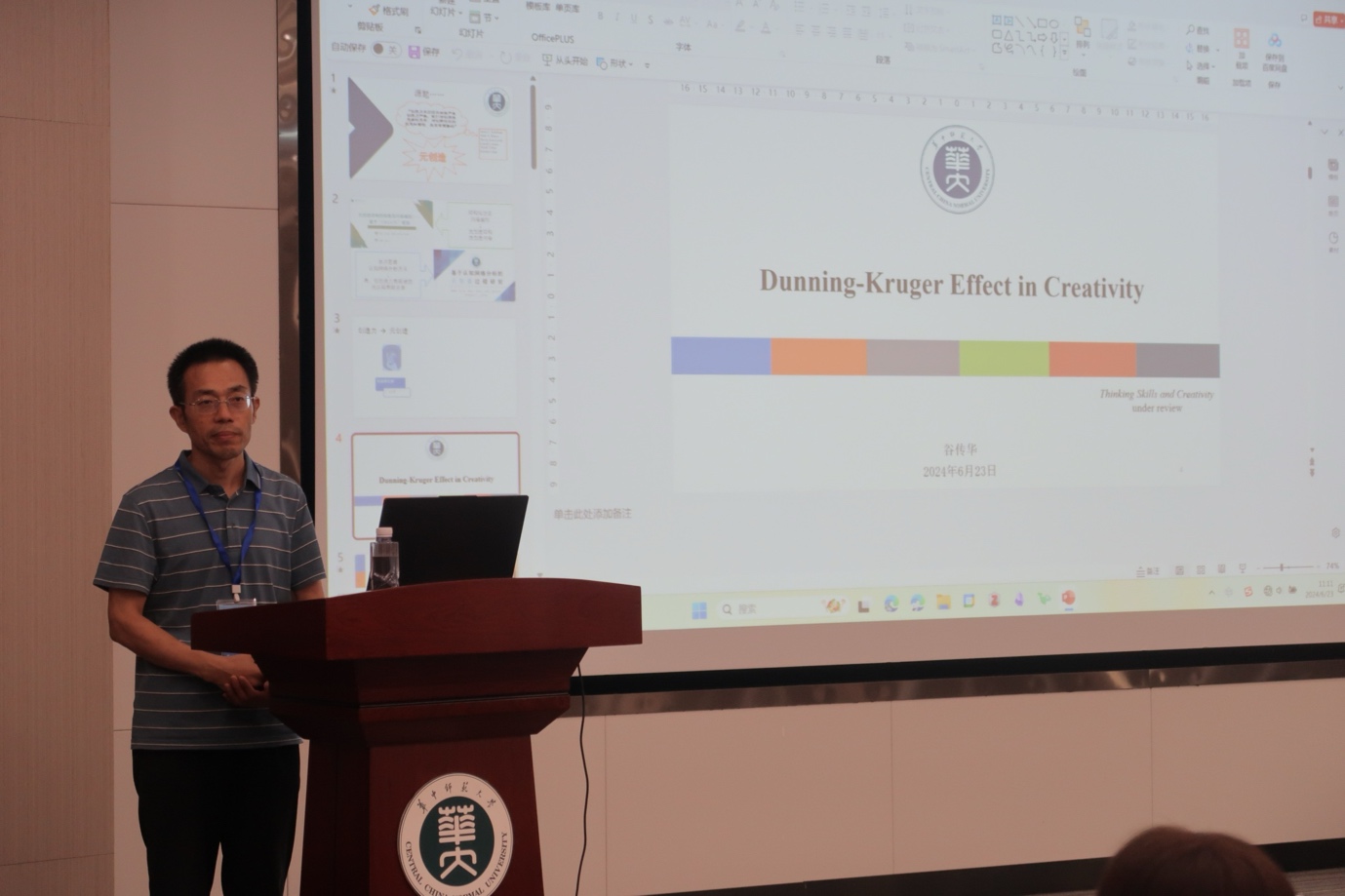 华中师范大学的谷传华教授进行了题为How does Dunning-Kurger effect happen in creativity的报告。他分析了达宁-克鲁格效应(Dunning-Kurger effect)如何在创造性任务中表现,以及这种心理现象对个体自我评估元认知能力和创造力发展的影响。谷传华教授提出了一些策略,旨在通过教育和训练来克服这种效应的负面影响。