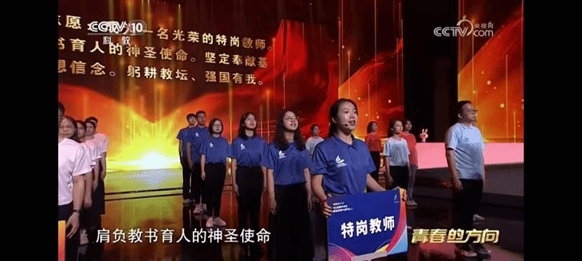 在出征仪式上,胡蓉蓉身着正装,高举“特岗教师”的名牌,英姿飒爽地走在队伍最前列,眼神中闪烁着对未来的坚定与憧憬。她带领队伍进行庄严宣誓:“我志愿:成为一名光荣的特岗教师。肩负教书育人的神圣使命。坚定奉献基层的理想信念。躬耕教坛,强国有我。”