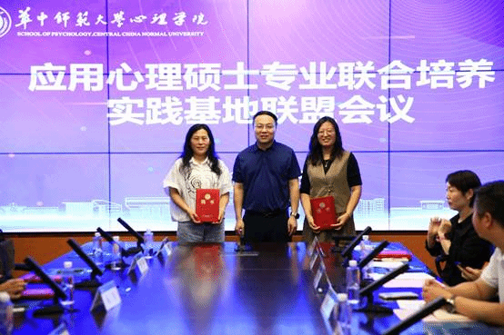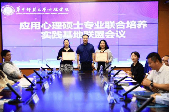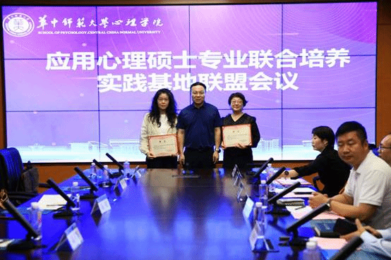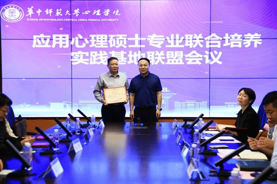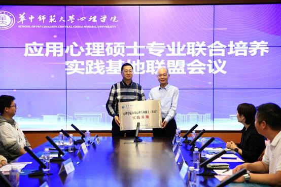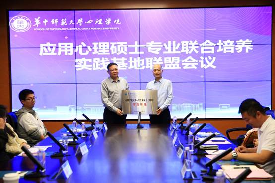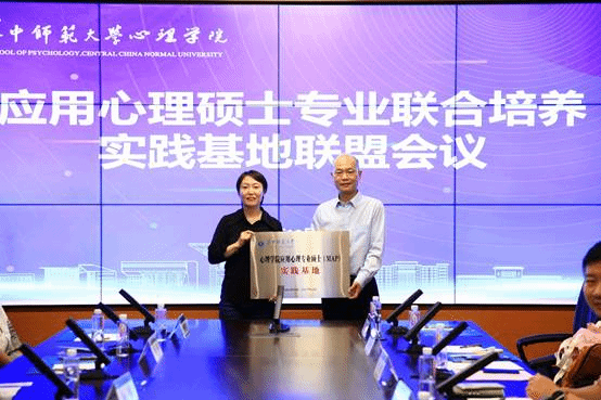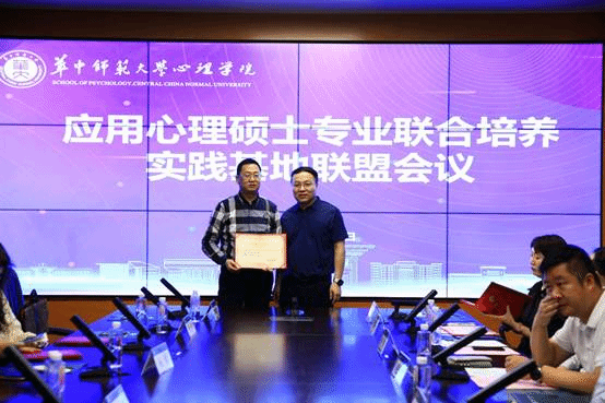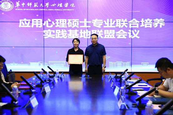 心理学院党委书记马新华为各实习实践基地进行授牌。