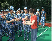 随后,学院领导们亲手将清凉饮品逐一递到每一位新生手中。训练场上笑声与感谢声交织,一份份饮品不仅驱散了夏日的燥热,更将学院的温暖与关怀传递到每一位新生心中。这一暖心举动,既是心理学院“以学生为中心”育人理念的生动体现,也进一步拉近了学院与新生的距离,让初入校园的同学们深切感受到“心院大家庭”的温暖。