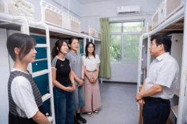 在新生宿舍内,彭校长与同学们亲切交谈,详细询问新生家乡地域、家庭情况及入校后的适应状态,细致了解宿舍设施使用、生活物资准备等实际需求,耐心倾听新生对大学学习生活的初步规划与期待。鼓励新生们尽快调整心态、转变角色,以积极饱满的精神面貌融入校园环境,既要在心理学科专业学习中打牢知识基础、深耕学术领域,也要主动参与校园实践活动,全面提升综合素养,在华中师范大学的平台上实现成长与突破。