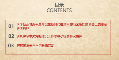 本次党组织生活会的学习内容包括三个方面:(一)学习领会习近平总书记在新时代推动中部地区崛起座谈会上的重要讲话精神;(二)认真学习中央党的建设工作领导小组会会议精神;(三)开展国家安全学习教育活动。