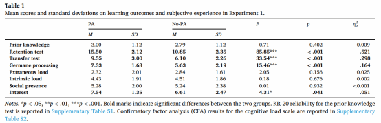 实验一发现,在教学视频中加入动画教学代理,能够显著提升儿童的保持成绩与迁移成绩,同时提高相关加工水平以及学习兴趣与动机;更重要的是,代理的加入并未增加额外认知负荷。