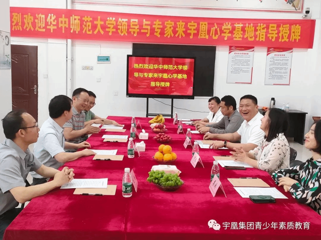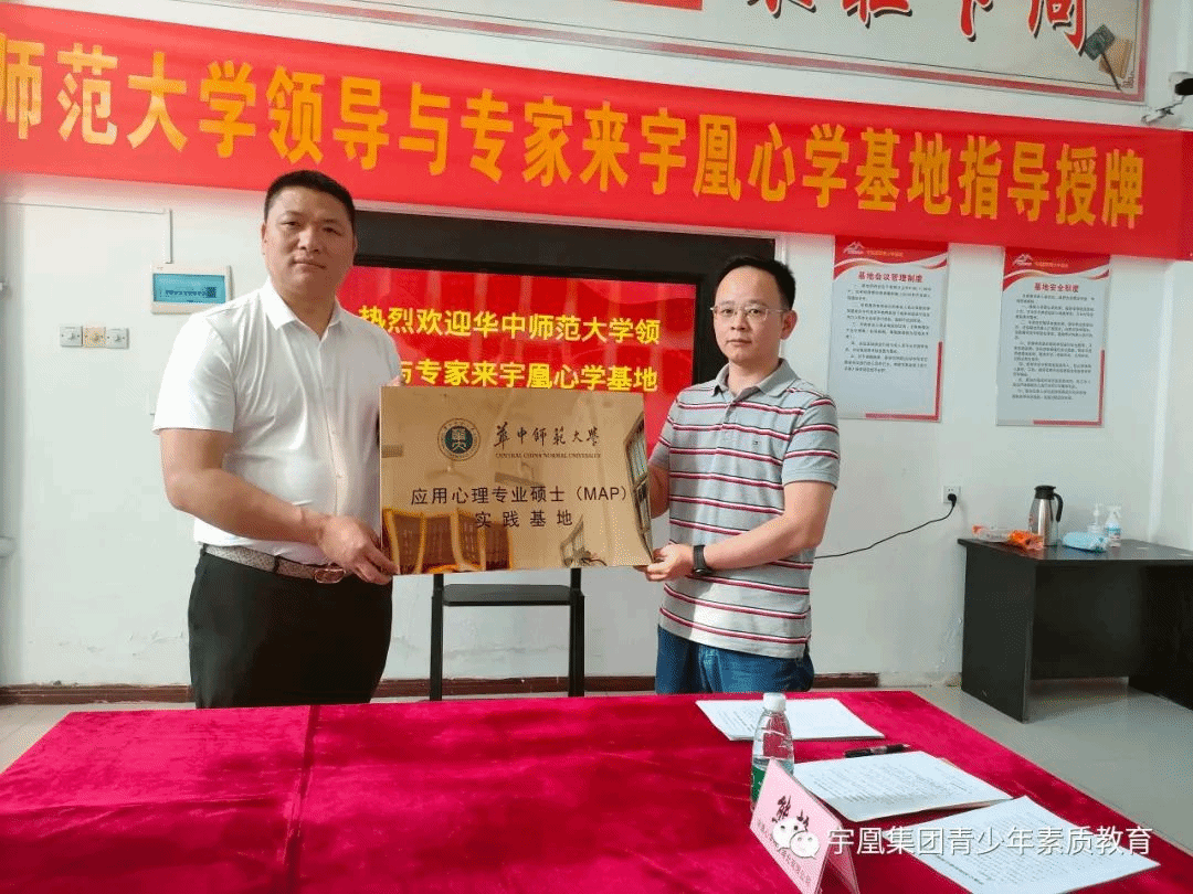 2022年5月6日下午,宇凰心理华中师范大学应用心理专业硕士(MAP)实践基地授牌仪式在武汉宇凰德育青少年基地庄重举行。出席授牌仪式的有华中师范大学心理学院孙晓军副院长、孔繁昌副教授、牛更枫副教授、朱旭副教授,宇凰心学创始人董事长罗俊楠、联合创始人总经理陈端、战略发展部主任胡勤、江夏德育基地负责人熊艳等。