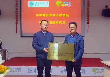 纽特心理董事长江普对华中师范大学心理学院为纽特授牌应用心理专业硕士( MAP)实践基地表达了荣幸和感谢:“华中师范大学心理学院是华中地区最为知名、实力最强、影响力最大的心理研究学院,学院‘青少年网络心理与行为教育实验室’是教育部重点实验室,应用心理硕士培养规模在全国更是名列前茅。纽特心理在帮助青少年网络成瘾问题方面有着多年的实践经验,有着丰富的课题可供研究,双方加强合作,一方面学院为机构输送推荐人才,一方面机构为学院学生提供优质的实践机会。学院为机构授牌是对纽特的信任与认可,希望双方在心理研究课题上多些空间,让教学、研究和心理服务产业相结合,实现多赢合作局面。”