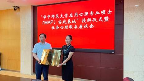 5月10日上午,“华中师范大学应用心理专业硕士( MAP)-武汉市精神卫生中心实践基地”授牌仪式暨社会心理服务座谈会在武汉市精神卫生中心隆重举行。
