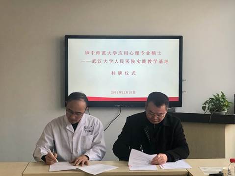 为落实《教育部关于做好全日制硕士专业学位研究生培养工作的若干意见》(教研[2009]1号)文件的要求,进一步加强应用心理专业人才的培养,推进心理学科研工作和实践环节相结合,华中师范大学和武汉大学人民医院于2019年10月26日上午在武汉大学人民医院精神卫生中心暨湖北省精神卫生中心成功举办“华中师范大学应用心理专业硕士(MAP)示范实践基地”挂牌仪式。