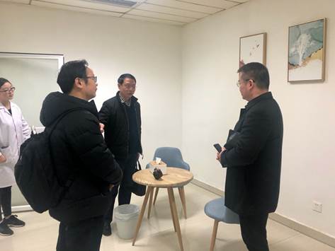 参与此次挂牌仪式的有华中师范大学心理学院副院长孙晓军教授、华中师范大学研究生院培养办郭邦俊主任、武汉大学人民医院精神卫生中心兼精神科主任刘忠纯教授和精神科副主任舒畅副教授等(图一)。挂牌仪式由华中师范大学心理学院贺金波教授主持,郭邦俊主任、孙晓军副院长、刘忠纯主任分别代表华中师范大学研究生院、心理学院和武汉大学人民医院致辞,并就“应用心理专业硕士的人才培养及其现实需求、医院实践教学基地建设的必要性和可行性、心理治疗师的刚性需求及其培养渠道”等问题展开了热烈讨论,也就《华中师范大学与武汉大学人民医院全日制专业学位研究生专业实践协议书》各项条款达成共识,最终由郭邦俊主任和刘忠纯主任分别代表华中师范大学和武汉大学人民医院签署了合作协议(图二)。协议结束后,郭邦俊主任、孙晓军副院长和贺金波老师还深入该基地慰问在此实习的心理学院研究生,视察已经建设好的心理治疗室、团辅活动室和音乐治疗室等设施(图三)。