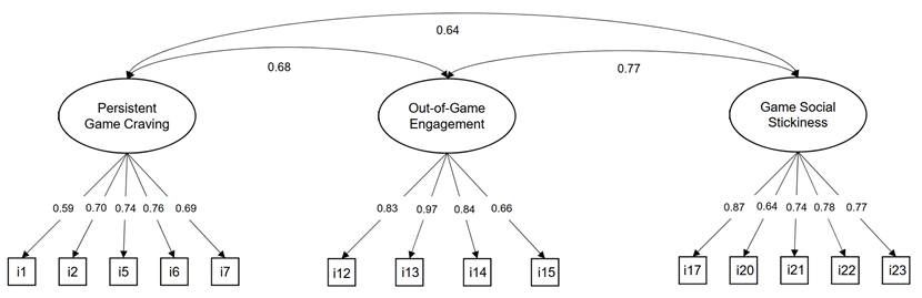 研究1对16名IGD个体进行了深度访谈,并通过内容编码和专家评估生成了持续游戏意愿量表(Persistent gaming intention scale, PGIS)的初始题目。研究2采用探索性因素分析和探索性图论分析来探索量表的结构、因子负荷以及各个维度下题目的稳定性。研究3采用验证性因素分析以及信效度检验进一步验证量表结构并提供全面的心理测量学属性。
