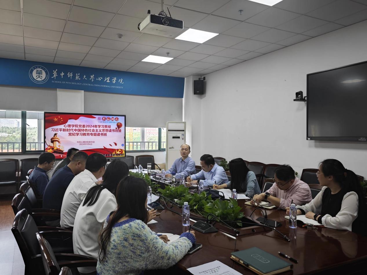5月6日,心理学院2024年学习贯彻习近平新时代中国特色社会主义思想读书班暨党纪学习教育专题读书班在南湖综合楼8030会议室举行。学院领导班子、教工支部书记和支部委员参加会议,党委书记马新华主持活动。马新华传达了学校党纪学习教育动员部署会和学校开展党纪学习教育实施方案精神,对学院深入开展党纪学习教育进行部署,并开展首次读书分享,结合案例对《中国共产党纪律处分条例》和党纪发展历程进行了生动讲解。