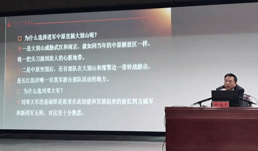 林海平老师的精彩讲授让我深入了解了从1921年到1949年,28年红旗不倒的大别山革命历史。从中共一大的召开,到创建鄂豫皖根据地;从第四次反围剿失败开始长征,到红军三大主力胜利会师;从华中地区浴血抗战,到解放战争中原突围,一桩桩、一件件真实的历史故事背后,是无数大别山的革命党员和人民群众为革命胜利洒下的热血、牺牲的生命。林海平老师对陈独秀、张国焘、徐海东、徐向前这些人物的功过评述,更是让我明白共产党人“初心易得,坚守不易”的真正涵义。