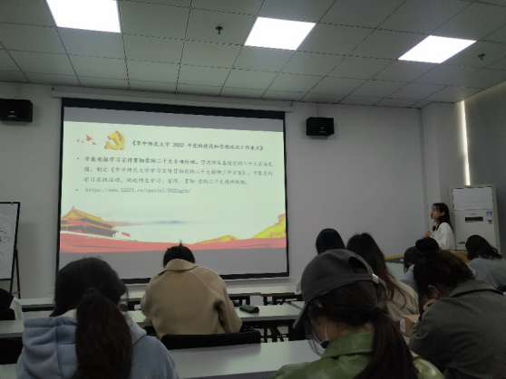 最后,书记对华中师范大学2022年党的建设和思想政治工作要点进行传达,并希望大家可以利用学习强国等APP加强理论学习。