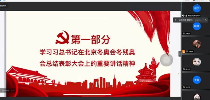 历经7年艰辛努力,举国关注,举世瞩目的北京冬奥会、冬残奥会胜利举办。中国人民同各国人民一道,克服各种困难挑战,再一次共创了一场载入史册的奥运盛会,再一次共享奥林匹克的荣光。本次主题党日活动上,崔佳宁同志带领大家深入学习了习近平总书记在北京冬奥会冬残奥会总结表彰大会上的讲话,重点学习了邓小岚同志的先进事迹,习近平总书记在表彰大会上首次提出的北京冬奥精神。在党中央坚强领导下,各有关部门攻坚克难,紧密合作向世界奉献了一届简约、安全、精彩的奥运盛会,赢得了全世界的高度赞誉。新时代青年应大力弘扬北京冬奥精神,以更加坚定的自信、更加坚决的勇气,向着实现第二个百年奋斗目标奋勇前进,向着实现中华民族伟大复兴的中国梦奋勇前进。