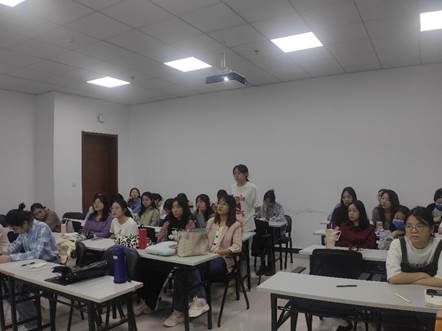 张彤同志为大家讲解了“四有教师”的含义,她道学习之后深知自己身上的责任和义务,要努力争做党和人民满意的“四有”好老师。并且指出成为“四有教师”的行为标准:“首先要时刻牢记端正自己的理想信念,培养高尚的道德情操;其次,作为一名师范院校的学生,在校期间要扎实学习理论知识,为之后的教书育人打好知识基础;最后,当我们走上教师岗位之后,也要始终保有一颗仁爱之心,关爱学生。”