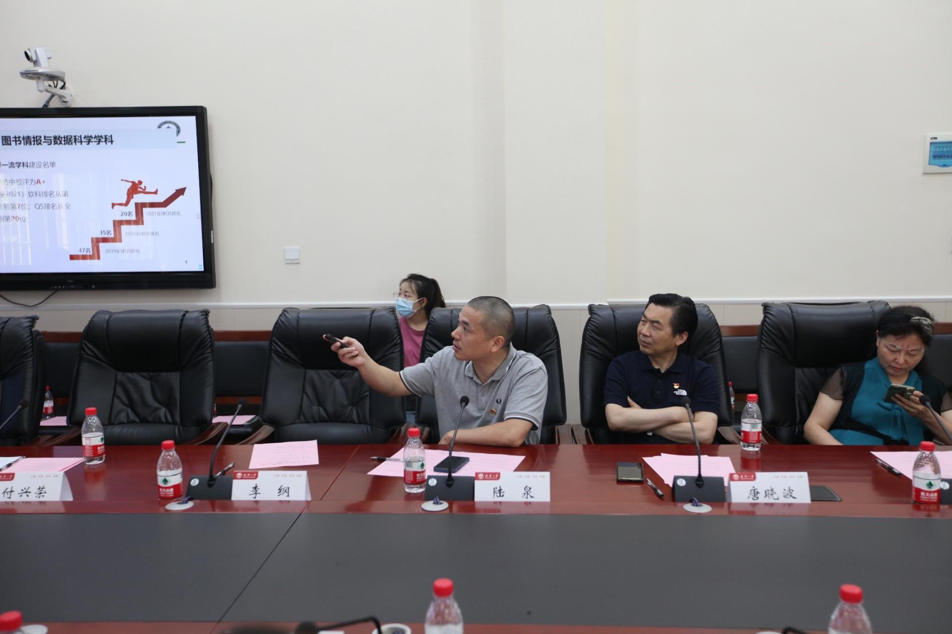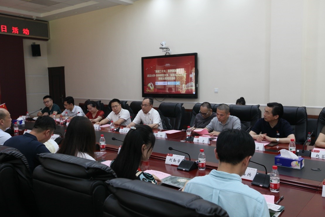 然后进入第二阶段:学科建设经验交流。华中师范大学心理学院副院长赵庆柏与武汉大学信息管理科学系主任陆泉分别对所在学科的发展历程和建设经验进行了分享。随后,双方教师党员围绕教学、科研、管理、服务等工作进行了热烈讨论,为后续的跨学科合作奠定了基础。