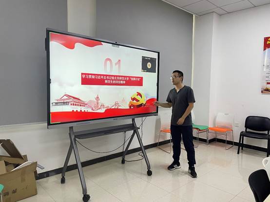 最后,支部书记包广华对本次党日活动进行了总结,强调支部全体党员要认真学习贯彻习总书记给北京师范大学“优师计划”师范生的回信精神,深入学习《习近平谈治国理政》第四卷,关心国家发展,关注时事热点,严于律己,坚定信心和决心,在学习和生活中发挥博士生党员的光和热。