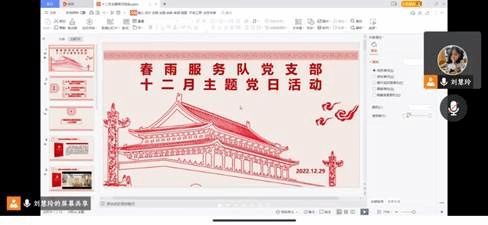 12月29日上午十点,心理学院春雨服务队党支部开展以“风雨同行,行而不辍”为主题的线上党日活动。本次活动由春雨服务队党支部副书记刘慧玲主持,心理学院春雨服务队党支部21级和22级全体党员参与此次活动。