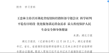 此次学习材料包含三部分内容,分别是继续学习宣传贯彻党的二十大精神、中央经济工作会议和湖北省疫情防控指挥部专题会议。