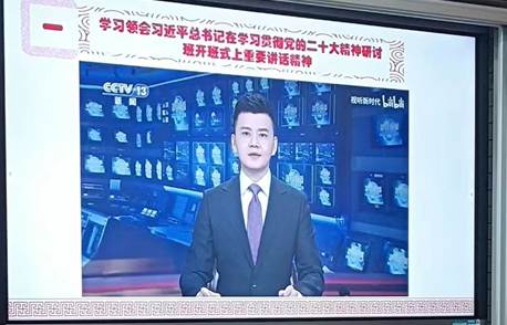 活动第一项,党员同志们通过观看新闻联播的方式一起学习领会习近平总书记在学习贯彻二十大精神研讨班开班班式上的重要讲话精神。2月7日,习近平总书记在开班式上发表重要讲话强调,概括提出并深入阐述中国式现代化理论,是党的二十大的一个重大理论创新,是科学社会主义的最新重大成果,中国式现代化是我们党领导全国各族人民在长期探索和实践中历尽千辛万苦、付出巨大代价取得的重大成果,我们必须倍加珍惜、始终坚持、不断拓展和深化。