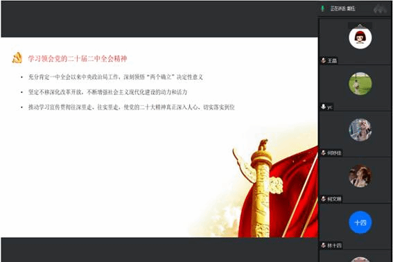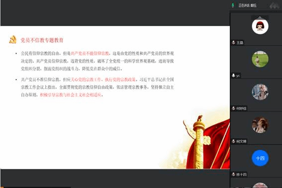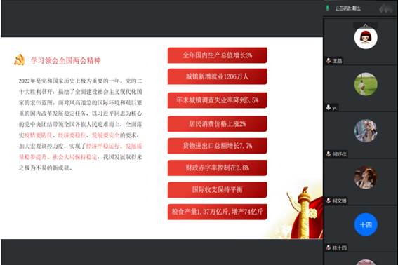 为进一步提升党支部的凝聚力和战斗力,认真学习与领会全国两会精神,3月26日,心理学院2020级学硕党支部在线上腾讯会议开展了3月主题党日活动。本次党日活动由支部书记戴钰同志主持,支部43名党员参加。本次主题党日活动主要包括三个部分:学习领会全国两会精神、党的二十届二中全会精神、党员不信教专题教育。