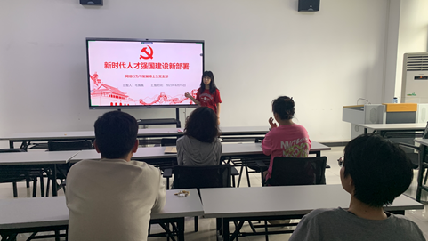 2023年6月15日下午,华中师范大学心理学院网络行为与发展博士生党支部采用线上线下相结合的方式在南湖综合楼8012教室开展了支部书记讲党课活动。此次活动的主题是“新时代人才强国建设新部署”,由毛佩佩同志领学,网络行为与发展博士生党支部全体党员参加了本次活动。