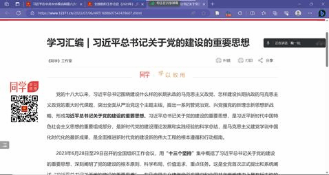 支部书记鞠一琰带领支部学生党员学习领会习近平总书记关于党的建设的重要思想和对党的建设和组织工作的重要指示精神。我们要以习近平总书记关于党的建设的重要思想为根本遵循,抓好学习宣传和转化运用,在新时代新征程彰显新担当新作为,不断推进教育强国建设,以优异的成绩迎接建校120周年,努力开创学校事业发展新局面。