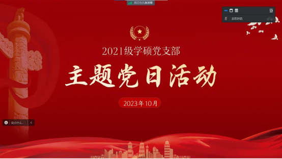 10月28日晚,心理学院2021级学硕党支部10月主题党日活动于线上开展,36名2021级学硕党员参加,由党支部书记鞠一琰主持。