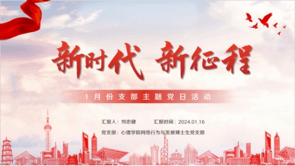 2024年1月16日晚上,华中师范大学心理学院网络行为与发展博士生党支部开展了1月份支部主题党日活动。本次活动由刘忠健同志领学,网络行为与发展博士生党支部全体党员参加了本次党日活动。